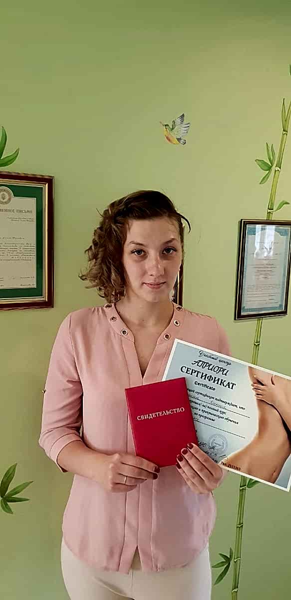 Повышение квалификации:Диплом «Современные Pin-Up мезотерапии в дерматологии и косметологии